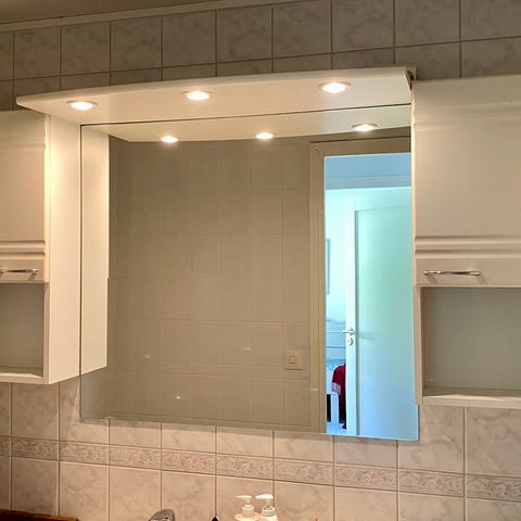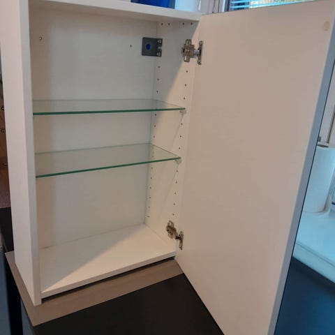 Peilikaappi kylpyhuoneeseen lasihyllyillä