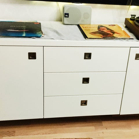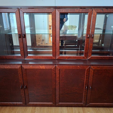 Myydään hyväkuintoinen senkki. Musta lasi oli ostettu erikseen ja se ei ole kiinnitetty, eli sen voi halutessaan poistaa.