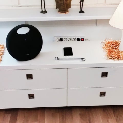Valkoinen senkki mustalla lasitasolla