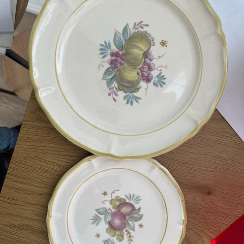 Rörstrand Silva -sarjan lautaset. Halkaisija 21cm. 12 kpl. Ikäisekseen hyvässä kunnossa, reunan hopeoinnit osittain kuluneet. Vain nouto.