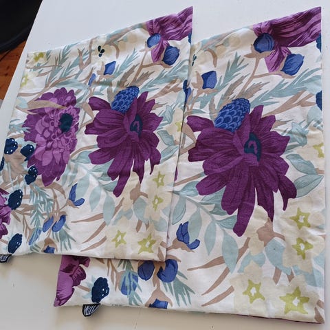 Myytävänä 2 kpl Vallilaan Ellen koristetyynynpäällisiä, koko 43cm x 43cm.
