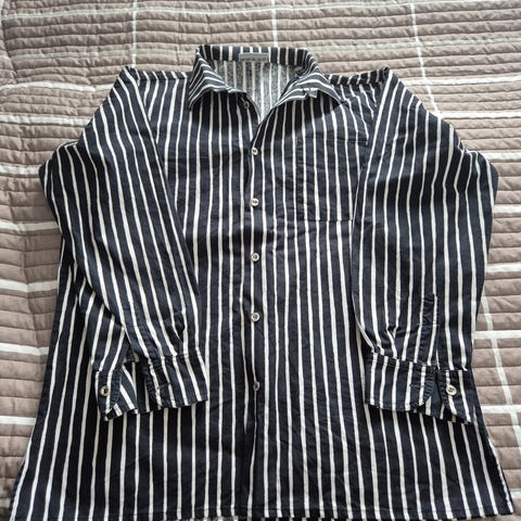 Siisti kauluspaita, jossa keltaiset ja harmaat raidat. Koko 38