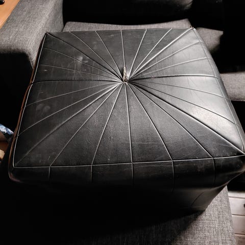 Retro henkinen rahi, jossa samettinen päällinen ja metalli jalat.