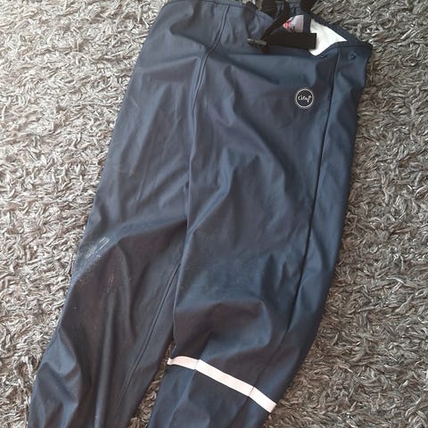Helly hansen kurahousut. Saumat kuluneet ja lenksut rikki. Pitää kyllä vettä ja esim takaa ei ole kuluneet. Henkselit on.