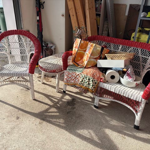 Nyt olis isomman tieltä pois hyväkuntoinen kahden istuttava rottinkisohva. Mitat: 114cm ,leveys 60cm, korkeus lattiasta nojaan 80cm