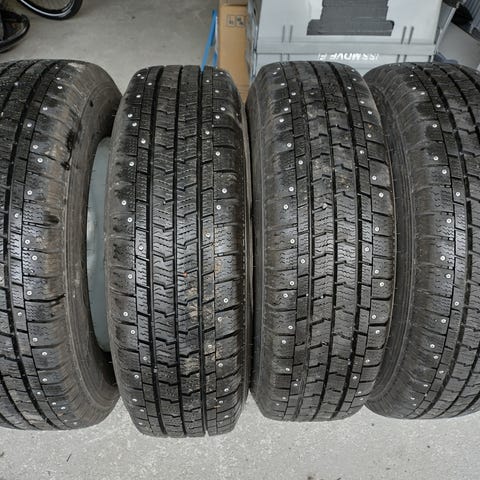 Hyvät vanteet 205/75-16c-renkailla ilman nastoja ympärivuotiseen käyttöön, pintaa 5 mm, kulmat ei kuluneet pyöreiksi, ilmat pysyy, valmis sarja alle, olleet v.2001-king cab.