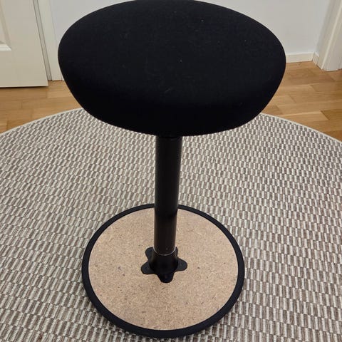 Näyttävä työtuoli. Korkeudensäätö kaasujousella, pehmeästi rullaavat pyörät. Lukittava keinumekanismi. Pieni naarmu tuolin kyljessä