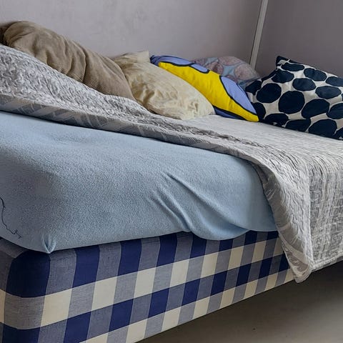 Annetaan vartalotyyny esim. käsitöitä varten. Päälykangas kokenut kovia kun ollut lähinnä lasten leikeissä, mutta sisätyyny ja vanu ok.