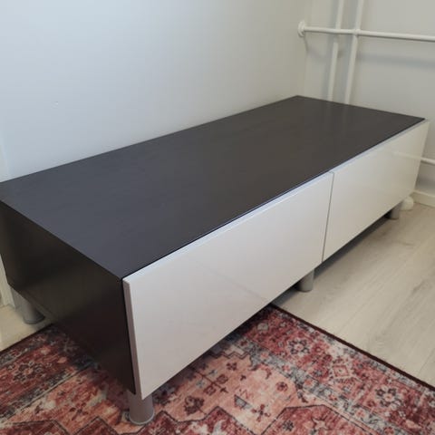Kuvan mukainen tv-taso kahdella vetolaatikolla.