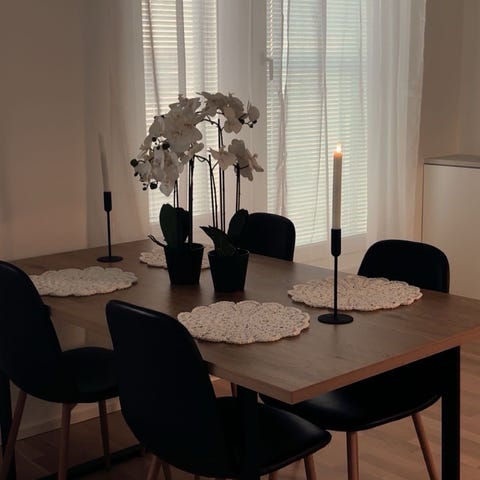 4 kpl Jyskin Jegind -tuoleja. Ostettu viime vuonna, eli sanoisin että uuden veroisia. Pöydän kunto hyvä, vähän käytön jälkiä. Myydään yhdessä tai erikseen (pöytä 40€ tuolit 20€/kpl).