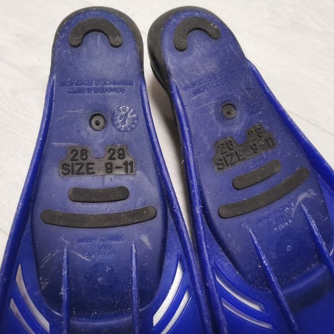 Räpylät olleet käytössä sekä uimarannalla että luonnonvesissä. Kunto hyvä, pienesti tummentumaa ja teksti halkeillut (ks kuvat). Ostettu uutena Varuste, Net.