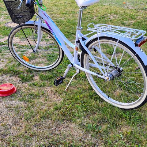 Siistikuntoinen pyörä. 24-tuumaiset renkaat. Sopii noin 7-12v tytöille. 3 vaihdetta. Tarvittaessa voin toimittaa lähialueelle.