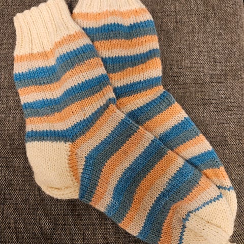 Seitsemän veljestä langasta tehdyt villasukat, koko 37-38. Kaunis oranssi väri.
