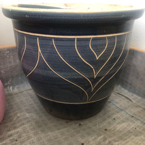 Myydään kaksi mustaa ulkoruukkua. Pienempi matta ja isompi lasitettu. Molemmissa reiät pohjassa veden poistoa varten. Ison lasitetun kunto on hyvä. Pienemmän kunto kohtalainen, sillä joissain kohdissa tullut nirhauma ja maalin alta näkyy hieman saviruukkua, kuvassa näkyy suurin nirhauma. Kuvissa myös 10 l ämpäri havainnollistamaan ruukkujen kokoa.
