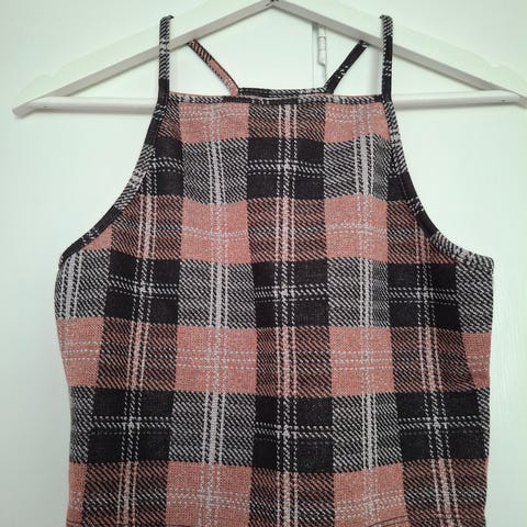 Naisten hihaton paita koossa S. Väri vaaleanpunainen. Edessä helmi- ja niittikoristeita, takana solmittava nauha. Sopii käytettäväksi esimerkiksi arki- tai juhlapaitana muiden vaatteiden, kuten hameen tai housujen, kanssa.