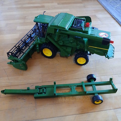 Bruder leikkuupuimuri. Moitteina etuosan leikkuuterästä lähtenyt pieni pala irti. Terä pyörii kuitenkin moitteetta. Lisäksi ohjaamon majakkavalo irronnut. Muuten hyvässä kunnossa. Moitteet huomioitu hinnassa.