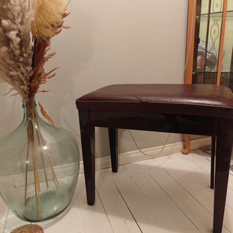 Siitä jämäkkä mutta sopivan pehmeä pianotuoli muuton alta. Tämä on se parempi ja hintavampi Bostonin malli. Mekaniikka ja korkeuden säätö toimii kuten pitää. Päällyste siisti. Jokin esine on kuitenkin painanut jälkensä päälliseen, joka näkyy tuollaisena kuviona, joka menee paremman puutteessa vaikka logosta. Katso kuvat. Tuolin voi kasata näppärästi ja helposti kasaan kuten kuvassa.