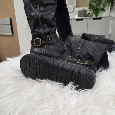 Vähällä pidolla olleet saappaat. Vetoketju ja venyke. Varren ympärysmitta 39 cm. Kannan korko 6,5 cm. Voin postittaa