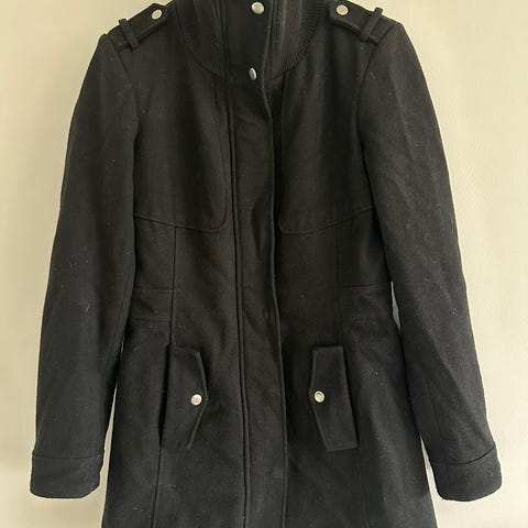 Punainen, hyväkuntoinen käytetty Noora-merkin villakangastakki. Kokomerkintä 34, mutta sanoisin ennemmin 38-40 eli vastaa kokoa M-L. Kuvassa M-kokoisen ja 171cm pitkän päällä.