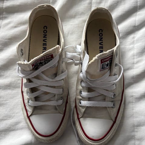 Converse tennarit, koko 37,5. Väriltään ruskeat nauhalliset varrelliset kengät. Päällinen on mokkapintainen, sisäpuolella pehmeä vuori. Kumipohja ja kuminen kärki.