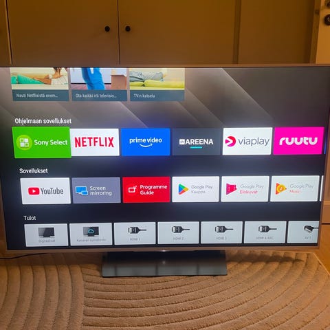 KD-55XE8505 mallin toimiva televisio. Näyttö hyvässä kunnossa ja siinä ei ole naarmuja. Television menu softa on hieman hidas, mutta tämä ei vaikuta katselukokemukseen. Kaikki streaming-palvelut toimii!