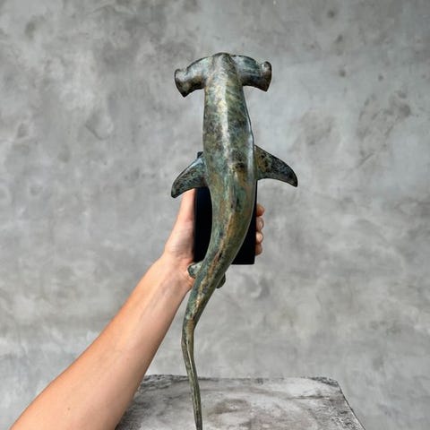 Pronssinen valashai-skulptuuri, joka on asetettu jalustalle, on vaikuttava taideteos, joka tallentaa näiden meren lempeiden jättiläisten arkon ja majesteetin.Tietoinen ihmiskunnan suorasta vaikutuksesta ympäristöön luovimme kunnioittavia vaihtoehtoja todellisille haavoittuville lajeille, kuten haille. Samoin lumoava mutta vähemmän vaikutusta.Skulptuuri on pronssia.Suunnitellut Jake Richmond.TOIMITUS- Kohde lähetetään seurantalukukoodilla DHL Parcelin, DPD:n tai PostNln kautta. Seurantalukemasi päivittyy Catawiki-eräsi kohdalla, kun pakettisi on jätetty.- Tarkista säännöllisesti, jotta pakettisi ei palautuisi meille; tällöin ostaja vastaa toisen lähetyksen postikuluista.- Espanjaan ja Portugaliin suuntautuvan seurannan osalta käytä tätä linkkiä ja lisää oma Catawiki-eräsi seurantanumero.https://clientesparcel.dhl.es/LiveTracking/HomeEMME YHDISTÄ TOIMITUKSIA!!!Jos sinulla on kysyttävää paketistasi, ota yhteyttä Catawiki-viestipalvelun kautta. Yritämme vastata kolmen arkipäivän kuluessa.HUOMIO"Patsaat ovat käsityönä, koska kyseessä on luonnontuote, väri voi poiketa kuvasta.Ole hyvä ja anna 1–2 cm poikkeama mittauksessa; mitta sisältää jalustan."