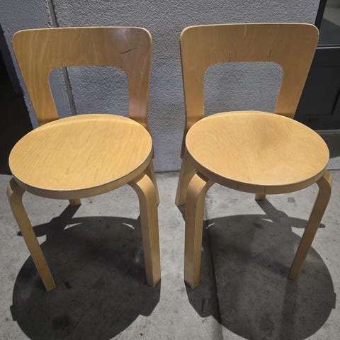 Artekin tuoli 66 koko koivu. Tuoli on ihan hyvässä käytetyssä kunnossa. Toki käytönjälkiä löytyy jonkinverran. Kolme muuta tuolia on myyty.