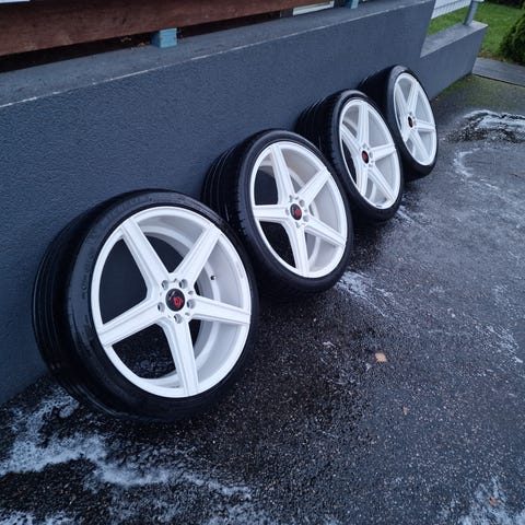 Vanteet ovat 19x8.5 et35 ja 19x9.5 et38. Päällä kesärenkaat eturenkaat 235/35-19 hyvä kuntoiset, takarenkaat 265/30-19 sisäreunat enemmän kuluneet. Olleet xdrive autossa.