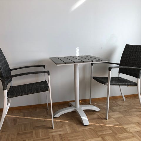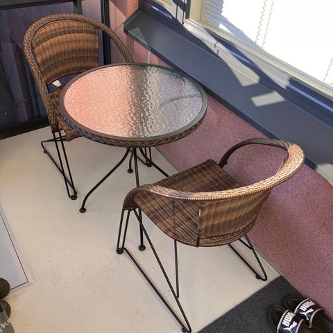 VARATTU! Pari vuotta sitten Citymarketista ostettu parvekekalustesetti. Pehmusteet säilytetty talvella lämpimässä varastossa. Mikkelin keskustassa, kissatalous.