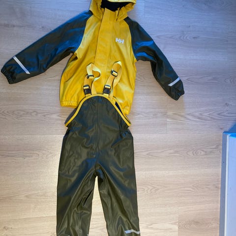 Myydään Helly Hansen vuorellinen lasten sadeasu setti, koko 110 cm.