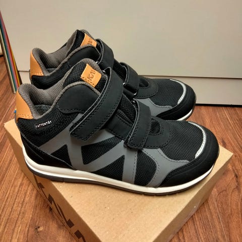 Meillä käyttämättä jääneet Kavatin kengät koossa 32. Sisällä ohut karva, joten nyt tähän keväälle hyvät. Sivuilla vetoketjut. Väri on jotain ruskean ja tumman burgundin välillä mielestäni. Koiratalous.