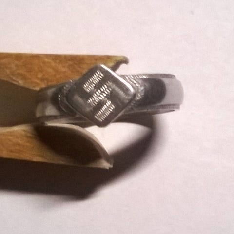 Hopea sormus. Leimat löytyy.