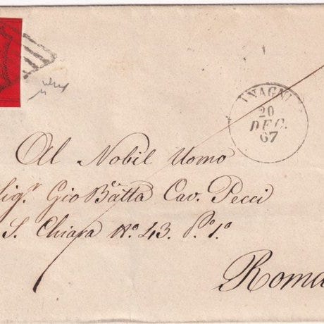 Italian antiikkivaltiot - Kirkkovaltio 1867 - II^ Em. 80 c. roosa lilacin