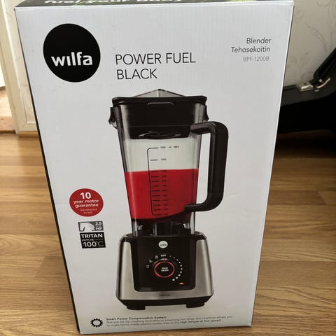 Russell Hobbs tehosekoitin, jossa lasikannu ja punainen runko. Tilavuus 1.5 litraa.Vähän käytetty.Nouto Inkeroisista.