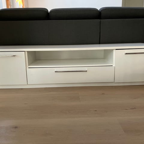Käytetty Ikean tv-taso/senkki kokonaisuus. Tarroista jäänyt liimaa oviin ja kynästä jälki. Saa varmaan pois. Korkeus 64cm, leveys 180 ja syvyys 41,5cm. Korkeus säädettävissä.