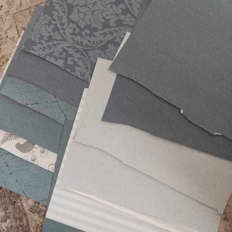 Reilu 10 arkkia eri kokoisia tapetinpaloja harmaan, mustan ja valkoisen sävyissä.