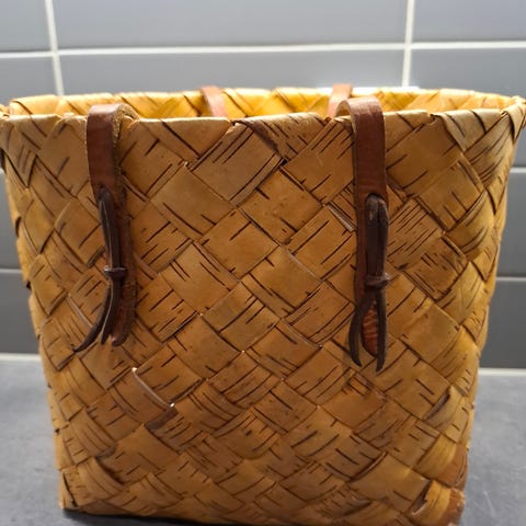 Isohko punottu tuohesta valmistettu selkäreppu.