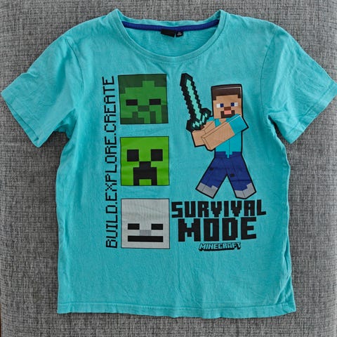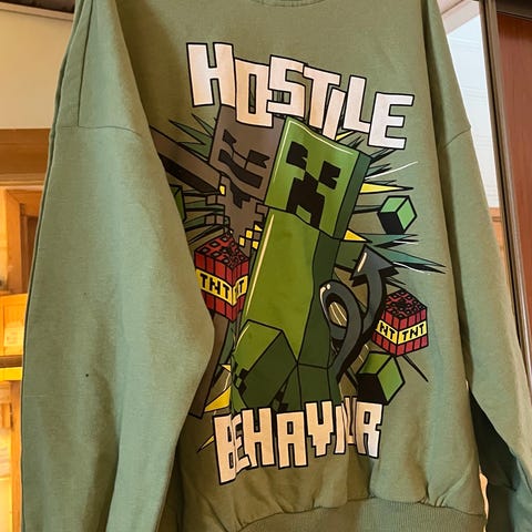 Reserved musta Minecraft Creeper pitkähihainen trikoopaita, koko 146. Pehmeää, vähän paksumpaa trikoota, 100% puuvillaa. Valkoinen kuva edessä ja takana. Vain käyttöönottopesty hajusteettomasti. Savuton ja karvaton koti.