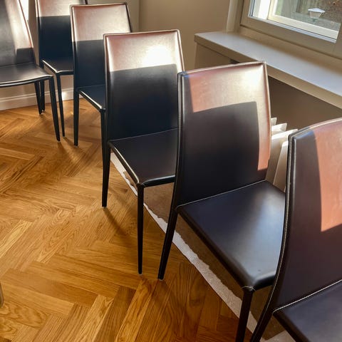 Kromiset rungot ovat painavahkot ja kestävästä materiaalista tehty; tuolit ovat erittäin vakaat ja hyvät istua.