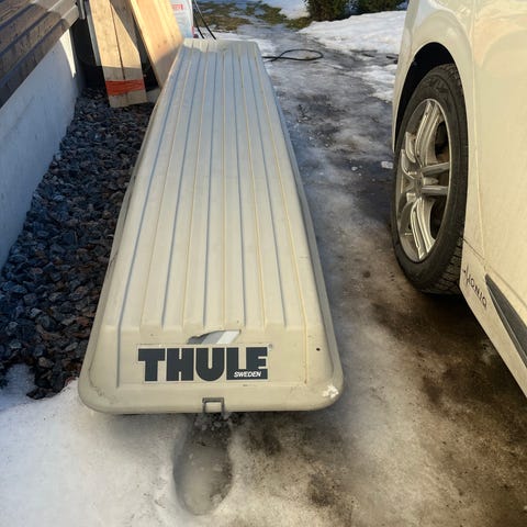Pitkä ja tilava, joten mahtuu kaikki sukset yms kamppeet. Kaasujouset ei enää parhaimmat eli ei pysy itsestään ylhäällä.