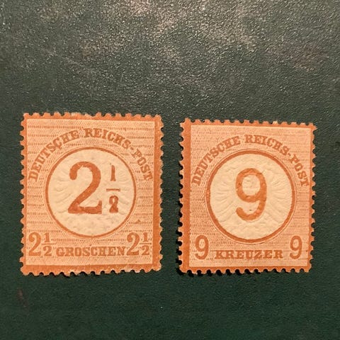 Saksan valtakunta 1874 - Brutschield-leimat painatuksella ja keskitetyt leimat -