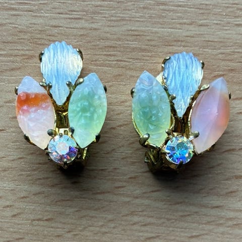 Helmikoristeinen 50-luvun rintaneula, halk. 3 cm, toimiktuskulut kirjeessä 5,50 tai XXS pakettina 6,90. Maksutavat: noudettaessa käteinen, toimitettuna tilisiirto.