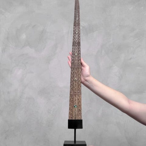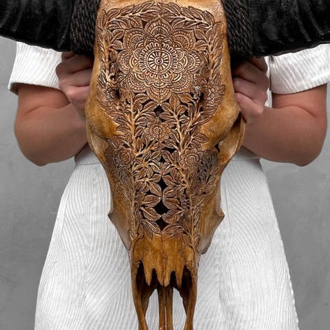 Suurikokoinen vesipuhvelin pää, käsin kaiverrettu lahjakkaiden balilaispuuseppien toimesta. Heidän isänsä ovat siirtäneet ikivanhan kaiverruksen perinnön pojilleen. Tämä pää on kokonaan veistetty auki. Kaiverrus on poikkeuksellisen korkealaatuinen.Kaiverrettuna on kaunis merimotiivi.ARVIOITU MITATPituus: 78 cmLeveys: 67 cmHUOMAUTUS- Päässä on nyörikyynärä, jonka avulla se voidaan kiinnittää seinälle. - Sarvet irrotetaan kuljetuksen aikana ja ne voidaan kiinnittää uudelleen helposti. Myös pääntakaosan takana on nyöri, jolla pää voidaan kiinnittää seinälle. - Sarvet on aina pakattu laatikon pohjalle, pään alapuolelle. Varmista, että poistat sarvet ennen pakkausmateriaalin heittämistä pois. - Koska kyseessä on luonnon pää, siinä voi olla pieniä luonnollisia halkeamia, rakoja tai puuttuvia hampaita. Tämä on normaalia. Tutustu kuviin. - Päämme ovat ammatillisesti puhdistettuja, mutta hampaille voi toisinaan ilmetä pientä värimuutosta. Tämä on luonnollista ja normaalia, eikä siihen ole paljon mahdollisuutta vaikuttaa. Tutustu kuviin. - Olemme lisänneet muutamia kuvia käsityöläisistämme työssään antamaan käsityksen kaiverretun pään luomisprosessista. - MAINITTU PAINO SISÄLTYY VANJAUSVAASAN MUKAAN.TOIMITUS- Tuote lähetetään seurantakoodilla DHL Parcelin, DPD:n tai postNl:n kautta. Seuranta päivitetään Catawiki-huutokauppalistallasi, kun lähetys on jätetty postiin/ kuljetukseen. - Tarkista säännöllisesti, ettei lähetys palautuisi meille, jolloin ostaja vastaa toisen lähetyksen kustannuksista.- Seurantaan Espanjaan ja Portugaliin käytä tätä linkkiä ja lisää Catawiki-huutokauppalistasi seurantanumerohttps://clientesparcel.dhl.es/LiveTracking/Home- ME EI YHDISTÄ MÄÄRÄAIKAISIA SHIPPUJA!!!- Jos sinulla on kysyttävää lähetyksestä, ota meihin yhteyttä Catawiki-viestipalvelun kautta. Yritämme vastata kolmen työpäivän kuluessa.