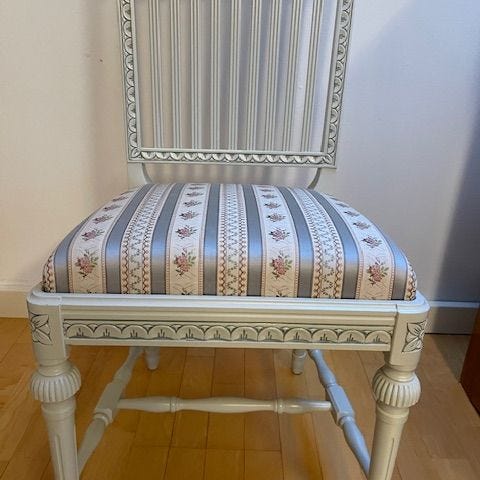 Tämä vanha kaunis Kustavi tyylin penkki etsii uutta kotia. Runko ehjä ja tukeva. Maalissa ajan tuomia jälkiä. Verhoilussa pari liimatahraa. Verhoilu aikanaan vaihdettu. Ei hajuja.