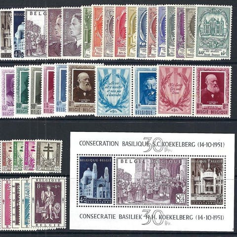 Belgia 1950/1951 - 2 täyttä vuosikertaa - OBP/COB 823/75 + BL 29