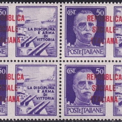 Repubblica Sociale Italiana 1944 - Pdg 50 c. Marina-violetti sovrastampa
