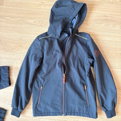 Name it softshell takki koko 146. Kunnossa ei moitteita.