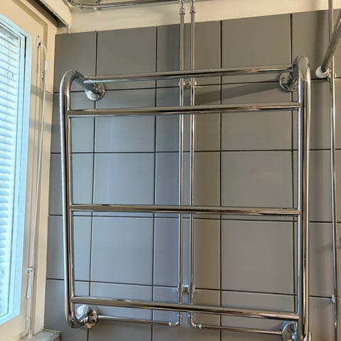 Toimiva, sähköinen rättipatteri katkaisijalla. Leveys 60 cm, korkeus 53,5 cm, syvyys 8 cm.