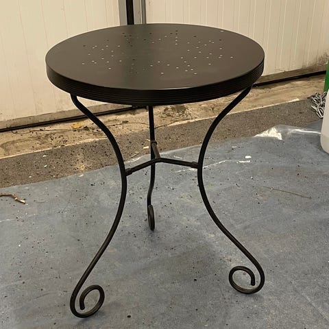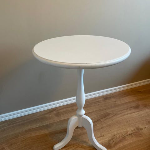 Pyöreä pikkupöytä, täyttä puuta ja tukeva,