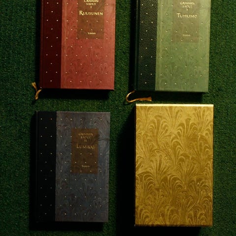 Erittäin hyvässä kunnossa olevat kirjat, myös kansipaperit siistit. Vihreä selkämys ja takakansi vihreän kirjava.
